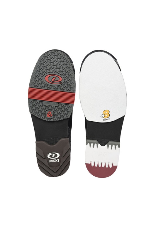 Interchangable Sole – Dexter SST and T-H-E series footwear features removable slide and traction soles to allow bowlers to choose from multiple replacement sole options to customize their slide based on approach conditions and their desired slide transition and traction levels.