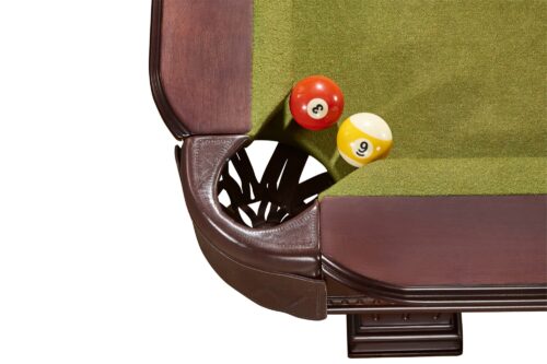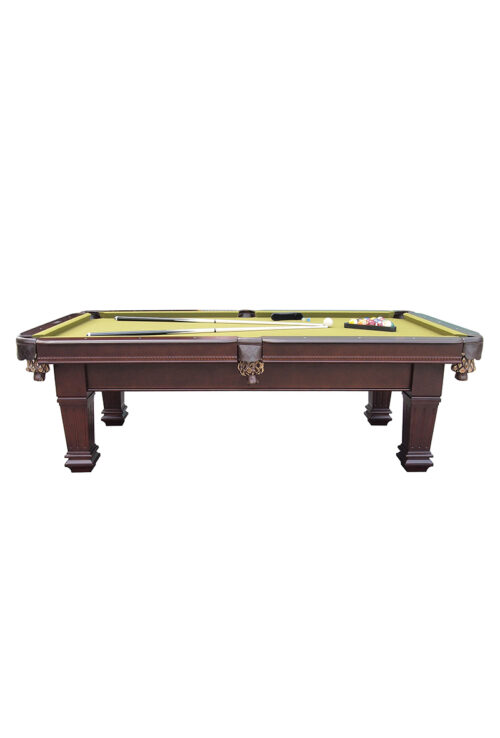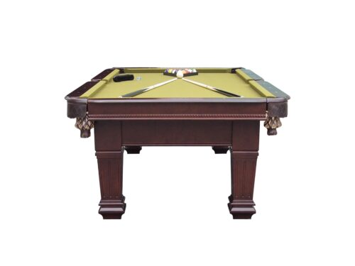 Τραπέζι αμερικάνικου μπιλιάρδου για οικιακή χρήση μόνο, χωρίς γραφίτη, σε καφέ χρώμα & τσόχα σε πράσινο Olive χρώμα.
