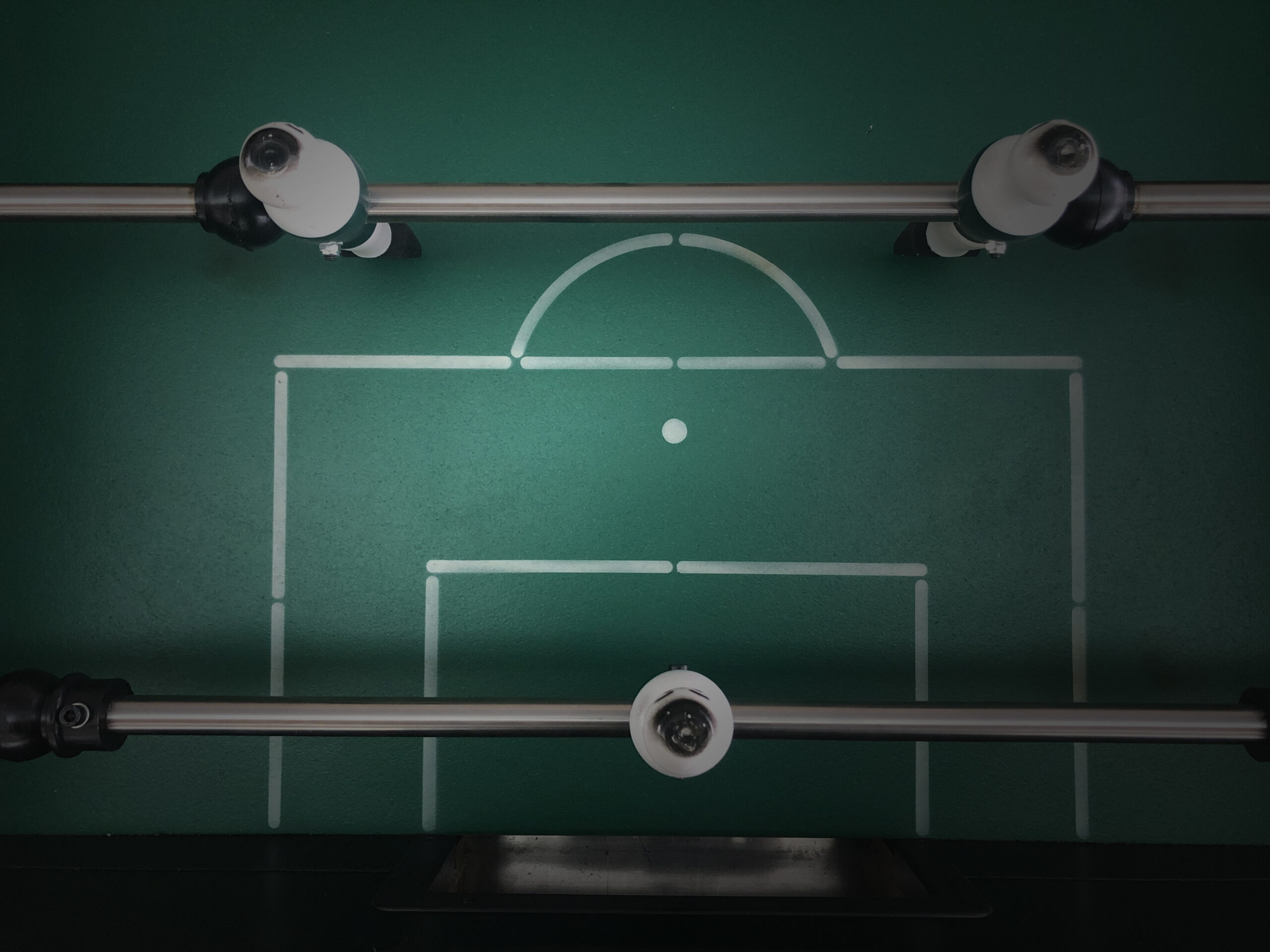 Το δάπεδο που έχει το ποδοσφαιράκι είναι κατασκευασμένο απο φελλό με ειδικό τρόπο και βαμένο έτσι ώστε να αποτυπώνεται το γήπεδο, όπως το σημείο του πέναλντι, η μικρή και η μεγάλη περιοχή. Ειδικά λάστιχα υπάρχουν πάνω σε inox βέργες για να αποσβεστούν οι κραδασμοί από τις απότομες αλλαγές κατεύθυνσης. Η inox βέργα που έχει το ποδοσφαιράκι προσφέρει ακρίβεια χτυπημάτων και μεγάλο χρόνο ζωής. Κάνε τις κατάλληλες πάσες φτάσε στην μεγάλη περιοχή και βάλε γκόλ.